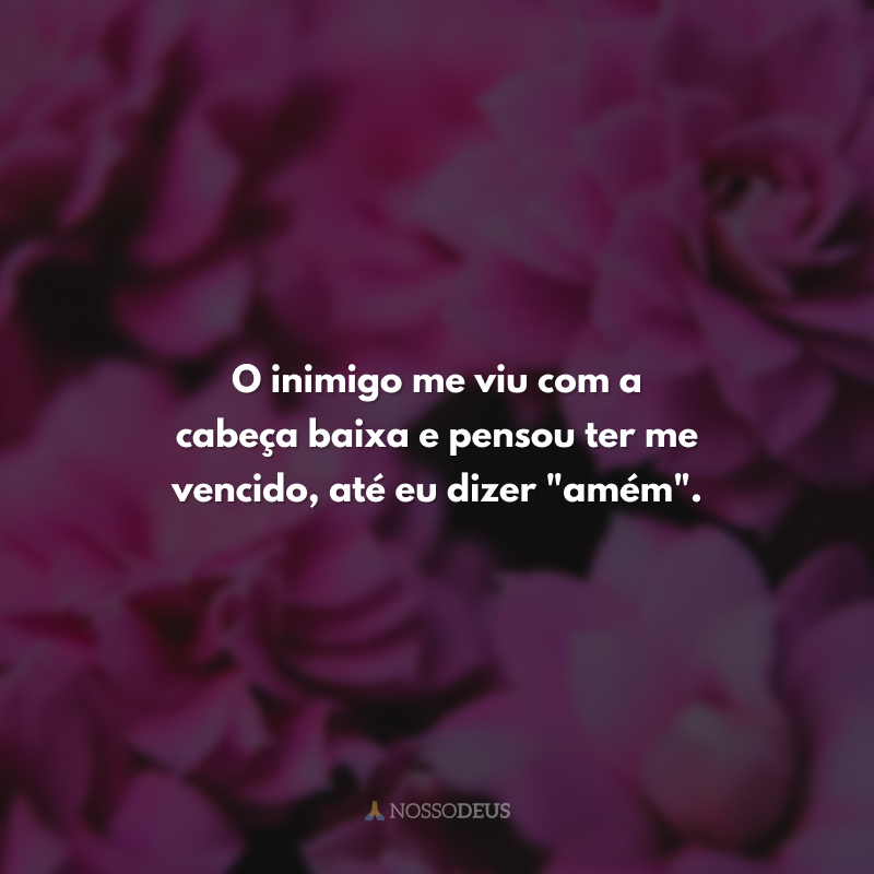O inimigo me viu com a cabeça baixa e pensou ter me vencido, até eu dizer "amém".