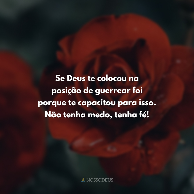 Se Deus te colocou na posição de guerrear foi porque te capacitou para isso. Não tenha medo, tenha fé!