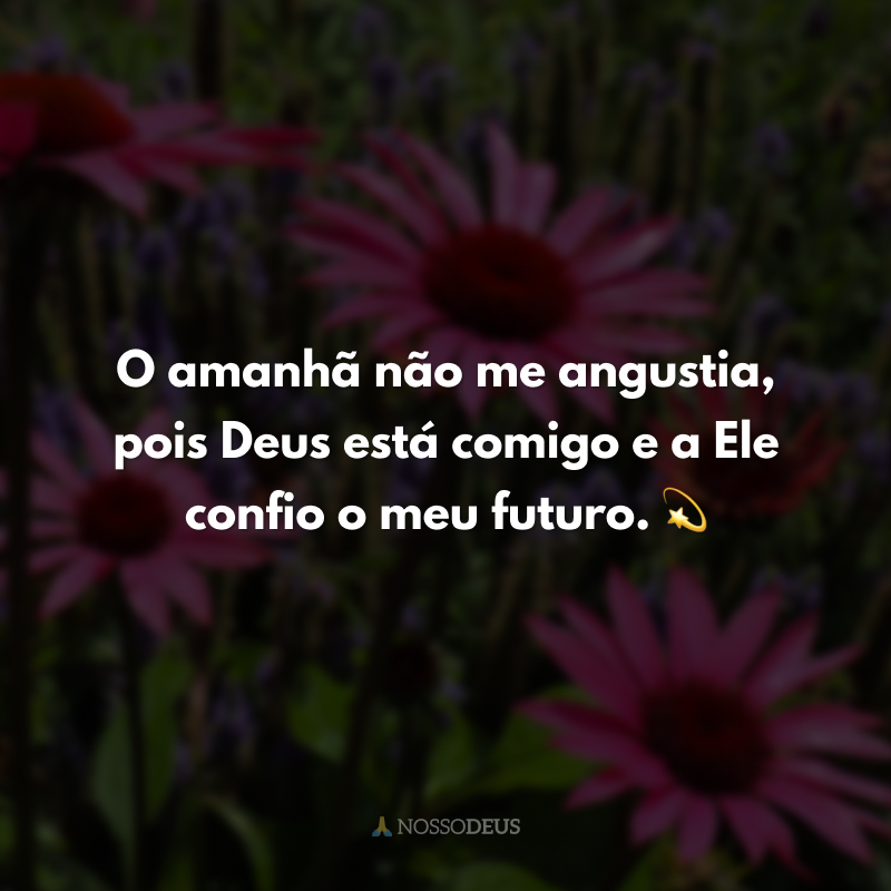 O amanhã não me angustia, pois Deus está comigo e a Ele confio o meu futuro. 💫