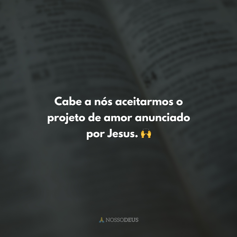 Cabe a nós aceitarmos o projeto de amor anunciado por Jesus. 🙌