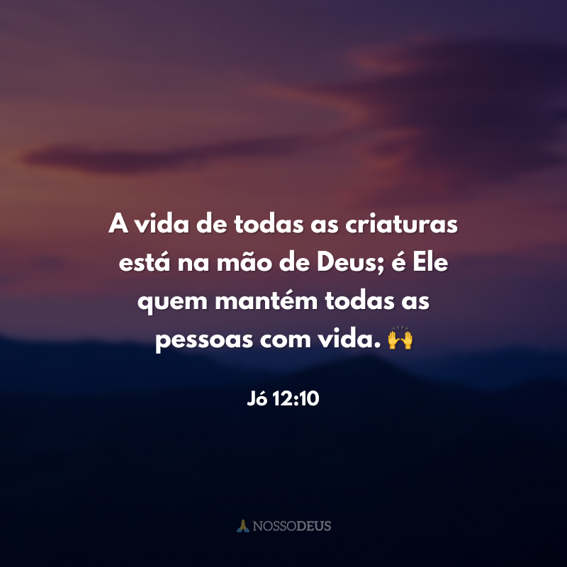 A vida de todas as criaturas está na mão de Deus; é Ele quem mantém todas as pessoas com vida. 🙌