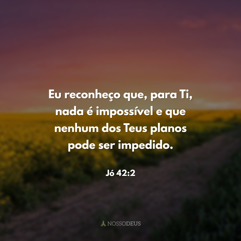 Eu reconheço que, para Ti, nada é impossível e que nenhum dos Teus planos pode ser impedido.