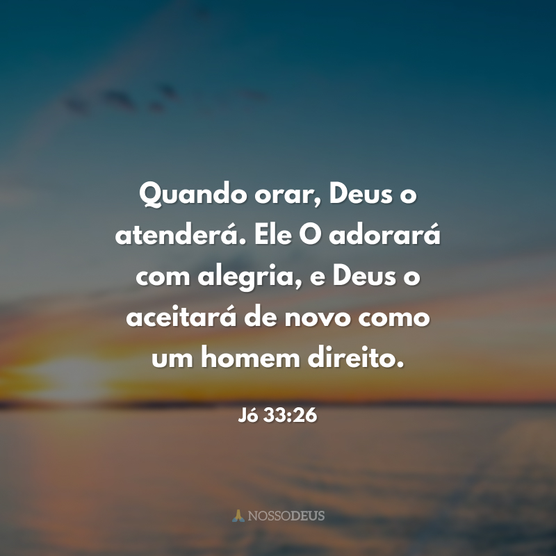 Quando orar, Deus o atenderá. Ele O adorará com alegria, e Deus o aceitará de novo como um homem direito.