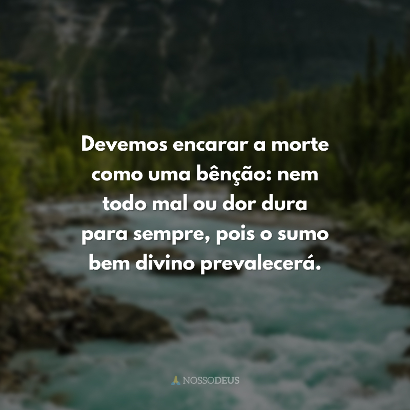 Devemos encarar a morte como uma bênção: nem todo mal ou dor dura para sempre, pois o sumo bem divino prevalecerá.