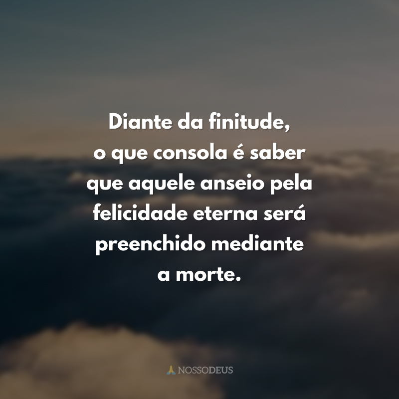 Diante da finitude, o que consola é saber que aquele anseio pela felicidade eterna será preenchido mediante a morte.