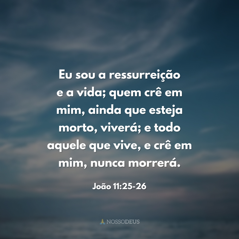 Eu sou a ressurreição e a vida; quem crê em mim, ainda que esteja morto, viverá; e todo aquele que vive, e crê em mim, nunca morrerá.