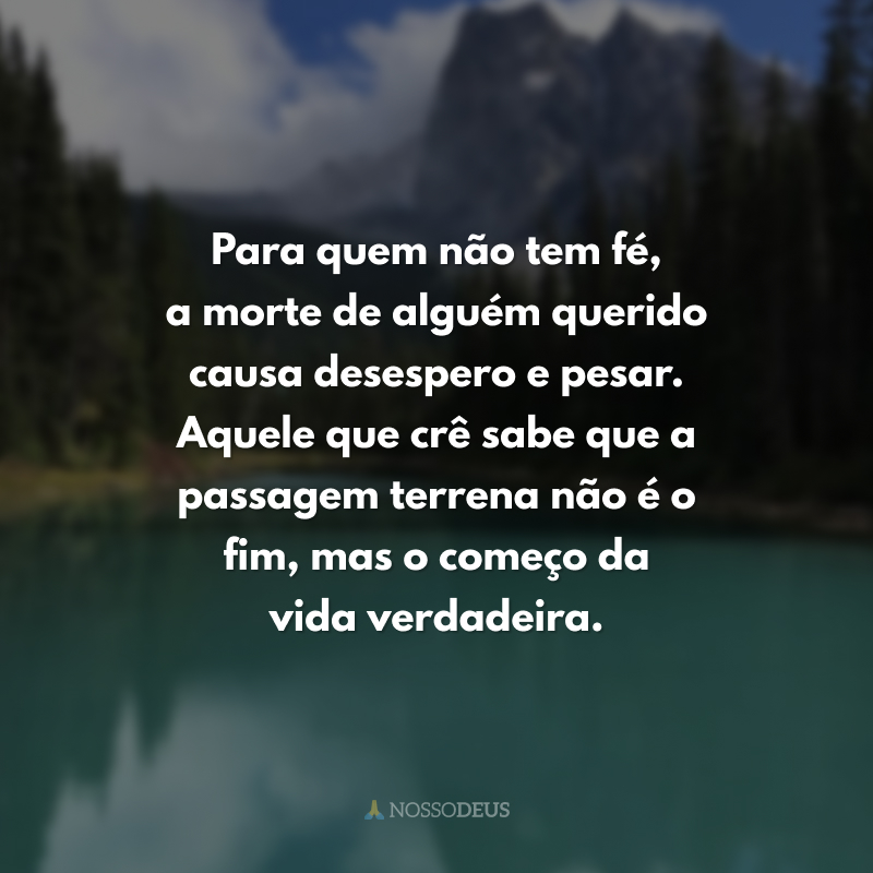 Para quem não tem fé, a morte de alguém querido causa desespero e pesar. Aquele que crê sabe que a passagem terrena não é o fim, mas o começo da vida verdadeira.