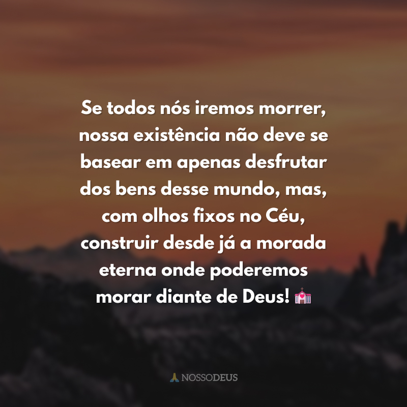 Se todos nós iremos morrer, nossa existência não deve se basear em apenas desfrutar dos bens desse mundo, mas, com olhos fixos no Céu, construir desde já a morada eterna onde poderemos morar diante de Deus! 💒