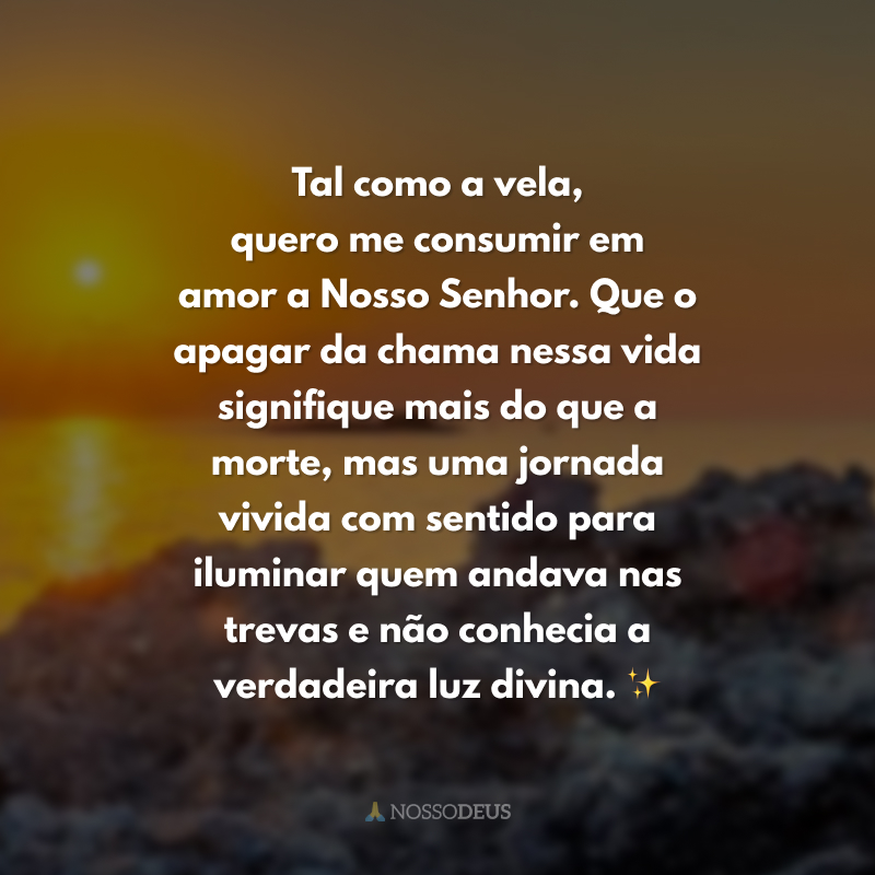 Tal como a vela, quero me consumir em amor a Nosso Senhor. Que o apagar da chama nessa vida signifique mais do que a morte, mas uma jornada vivida com sentido para iluminar quem andava nas trevas e não conhecia a verdadeira luz divina. ✨