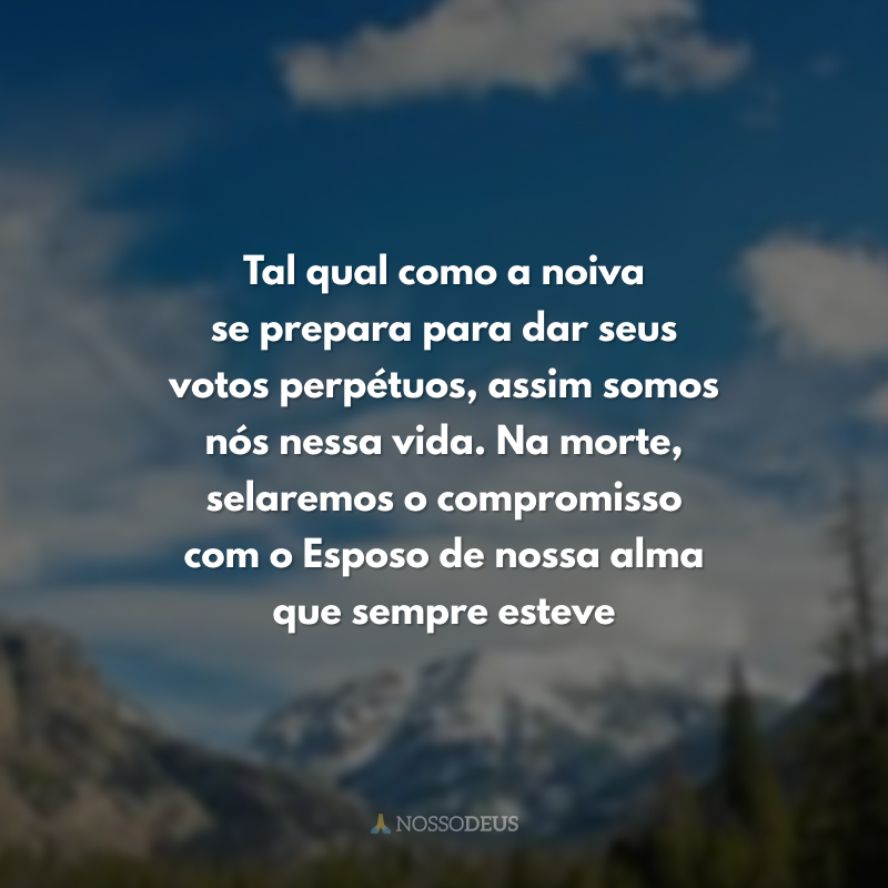 Tal qual como a noiva se prepara para dar seus votos perpétuos, assim somos nós nessa vida. Na morte, selaremos o compromisso com o Esposo de nossa alma que sempre esteve à nossa espera. ✝💍