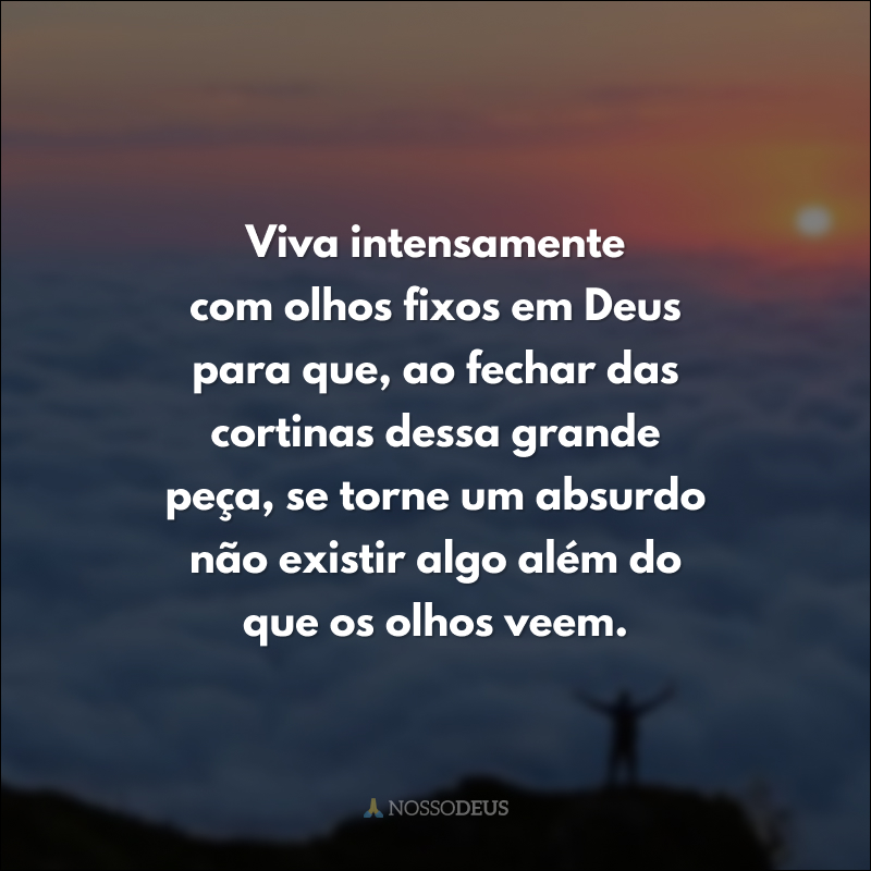 Viva intensamente com olhos fixos em Deus para que, ao fechar das cortinas dessa grande peça, se torne um absurdo não existir algo além do que os olhos veem.