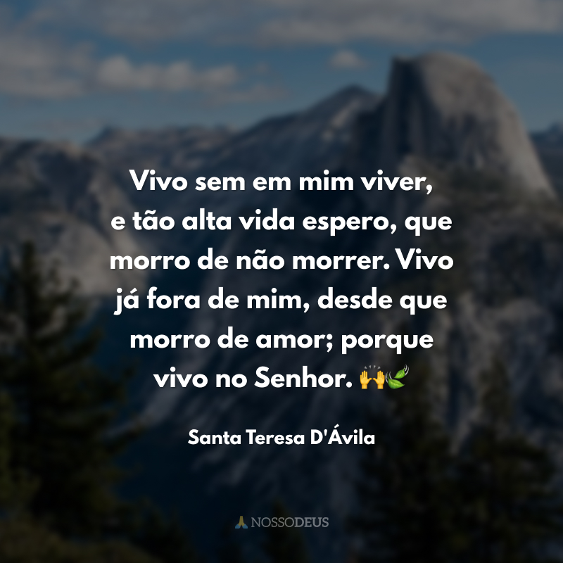 Vivo sem em mim viver, e tão alta vida espero, que morro de não morrer. Vivo já fora de mim, desde que morro de amor; porque vivo no Senhor. 🙌🍃