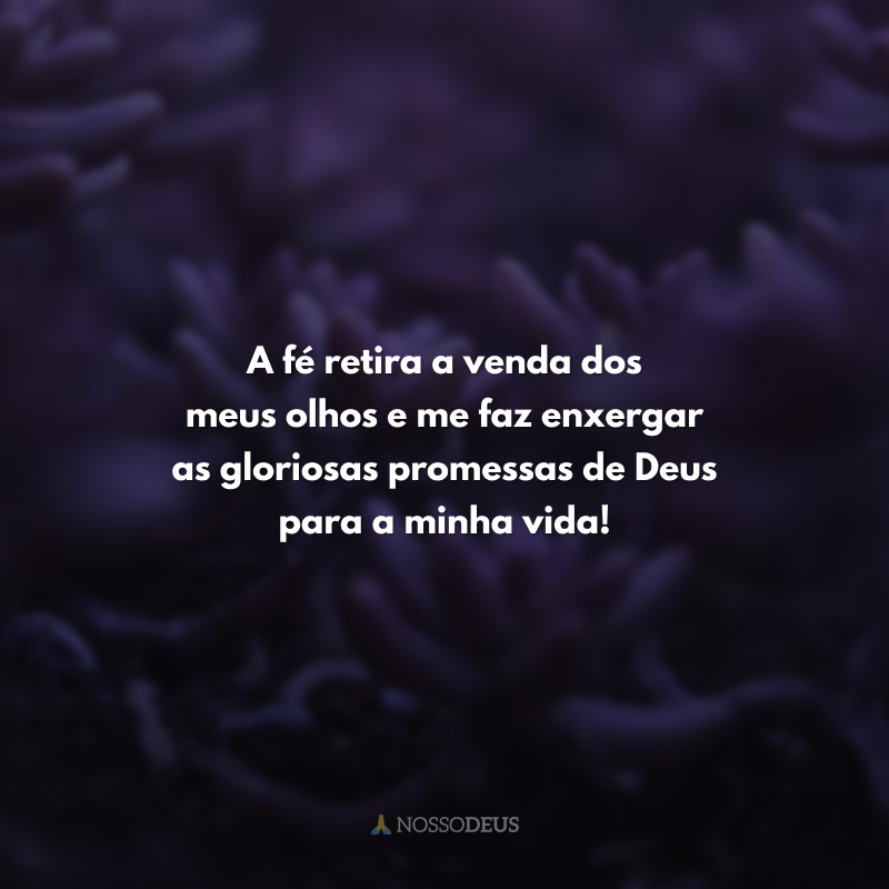 A fé retira a venda dos meus olhos e me faz enxergar as gloriosas promessas de Deus para a minha vida!