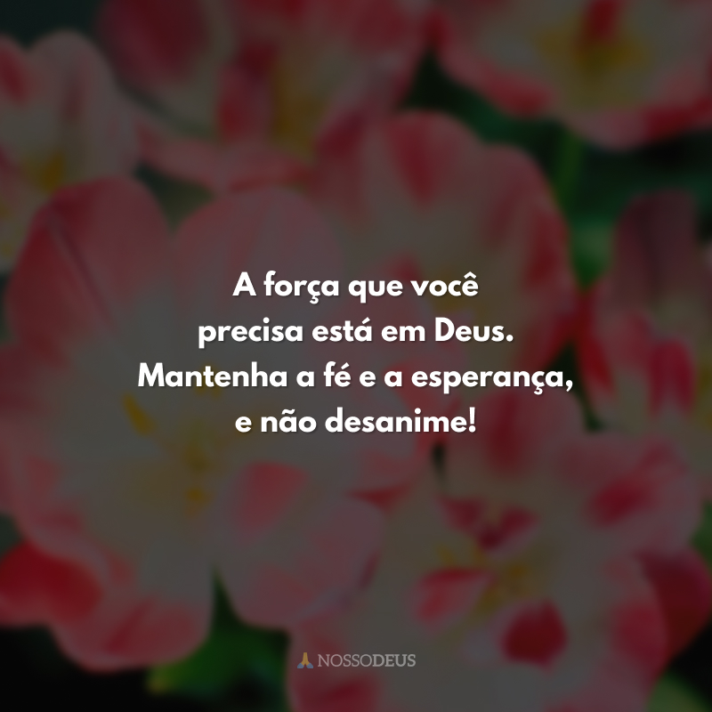 A força que você precisa está em Deus. Mantenha a fé e a esperança, e não desanime!