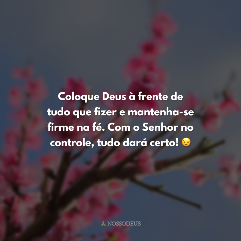Coloque Deus à frente de tudo que fizer e mantenha-se firme na fé. Com o Senhor no controle, tudo dará certo! 😉