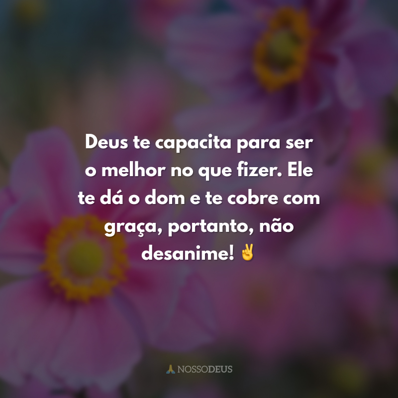 Deus te capacita para ser o melhor no que fizer. Ele te dá o dom e te cobre com graça, portanto, não desanime! ✌️