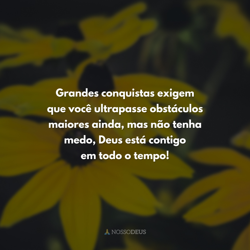 Grandes conquistas exigem que você ultrapasse obstáculos maiores ainda, mas não tenha medo, Deus está contigo em todo o tempo!