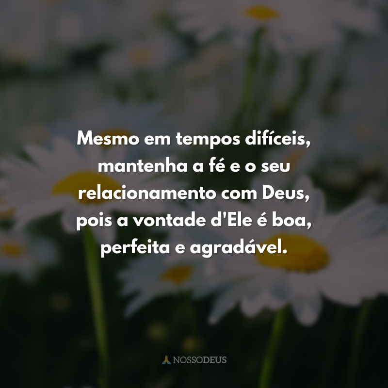 Mesmo em tempos difíceis, mantenha a fé e o seu relacionamento com Deus, pois a vontade d'Ele é boa, perfeita e agradável.