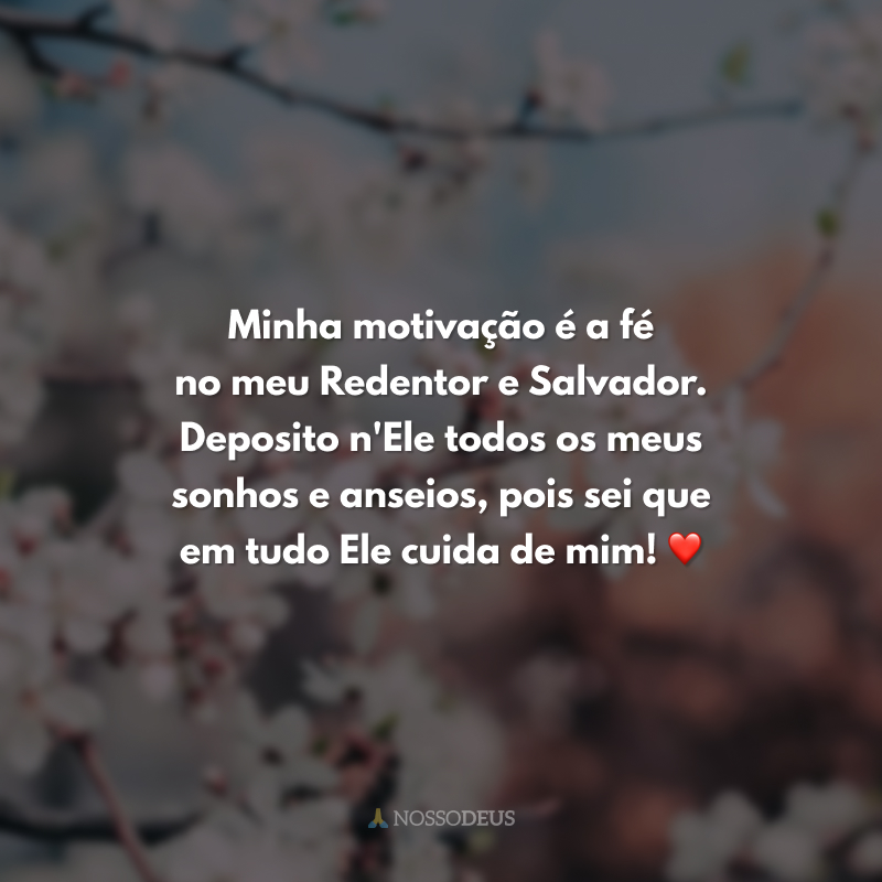 Minha motivação é a fé no meu Redentor e Salvador. Deposito n'Ele todos os meus sonhos e anseios, pois sei que em tudo Ele cuida de mim! ❤️