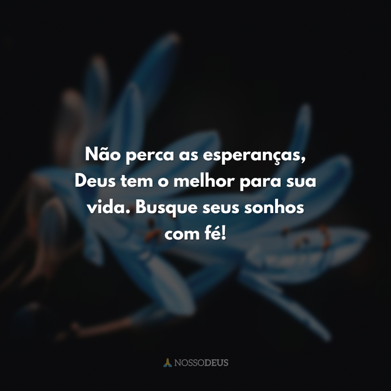 Não perca as esperanças, Deus tem o melhor para sua vida. Busque seus sonhos com fé!