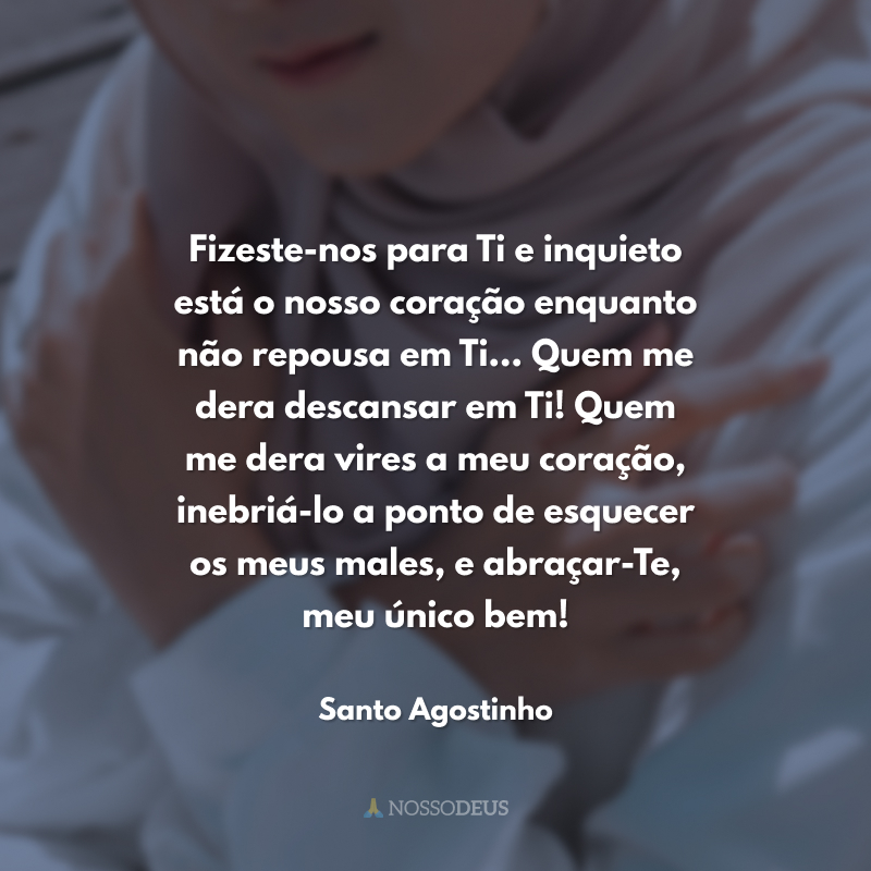Fizeste-nos para Ti e inquieto está o nosso coração enquanto não repousa em Ti... Quem me dera descansar em Ti! Quem me dera vires a meu coração, inebriá-lo a ponto de esquecer os meus males, e abraçar-Te, meu único bem!