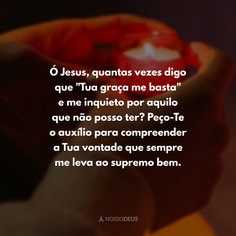 Ó Jesus, quantas vezes digo que "Tua graça me basta" e me inquieto por aquilo que não posso ter? Peço-Te o auxílio para compreender a Tua vontade que sempre me leva ao supremo bem.