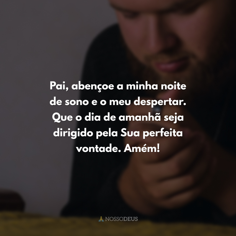 Pai, abençoe a minha noite de sono e o meu despertar. Que o dia de amanhã seja dirigido pela Sua perfeita vontade. Amém!