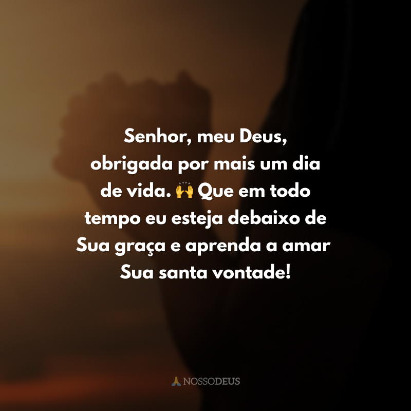 Senhor, meu Deus, obrigada por mais um dia de vida. 🙌 Que em todo tempo eu esteja debaixo de Sua graça e aprenda a amar Sua santa vontade!