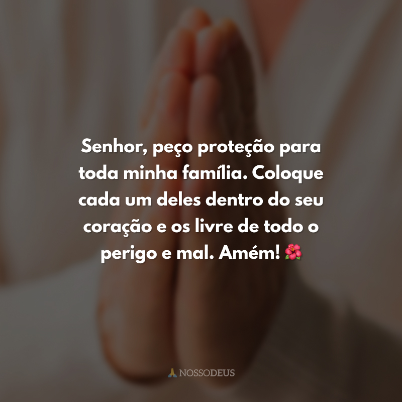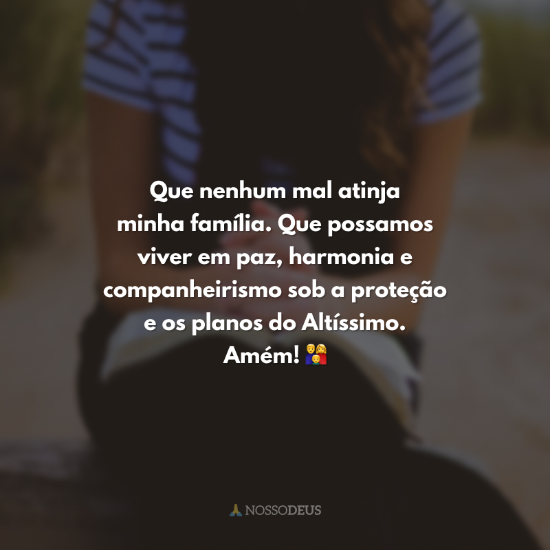 Que nenhum mal atinja minha família. Que possamos viver em paz, harmonia e companheirismo sob a proteção e os planos do Altíssimo. Amém! 👪