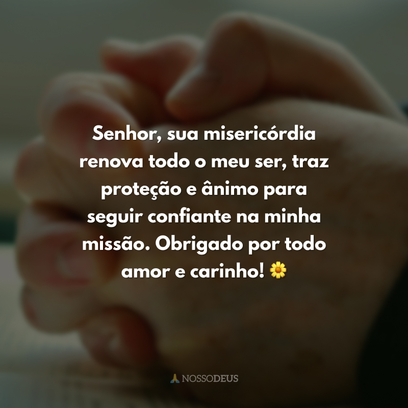 Senhor, sua misericórdia renova todo o meu ser, traz proteção e ânimo para seguir confiante na minha missão. Obrigado por todo amor e carinho! 🌼