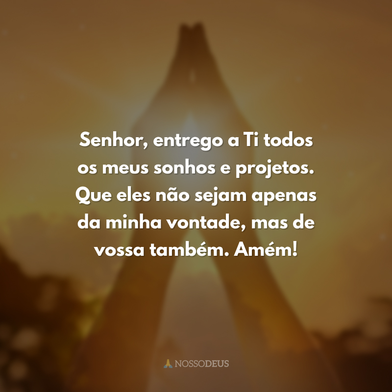 Senhor, entrego a Ti todos os meus sonhos e projetos. Que eles não sejam apenas da minha vontade, mas de vossa também. Amém!