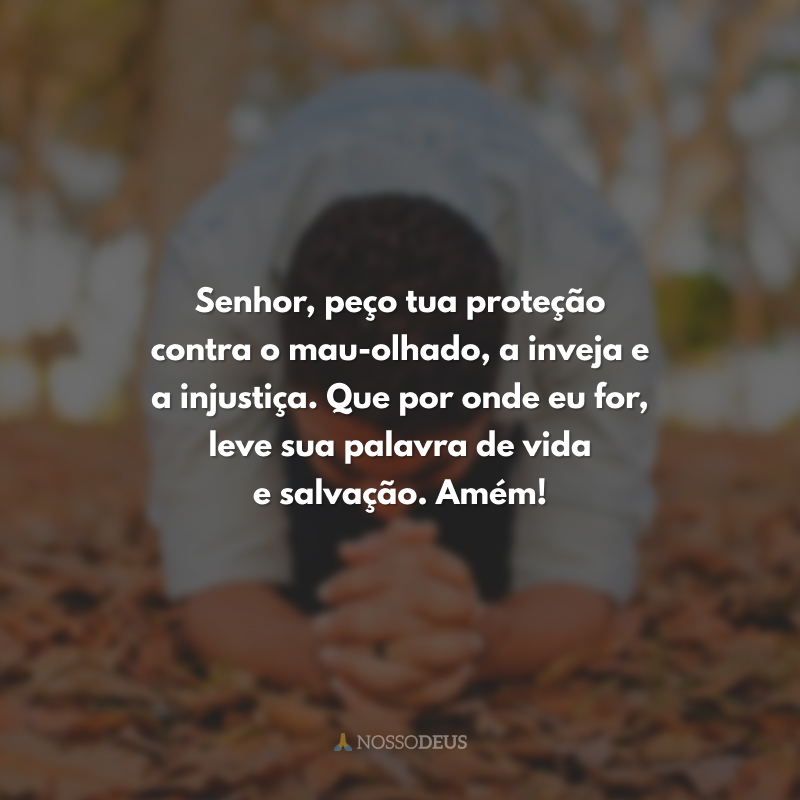 Senhor, peço tua proteção contra o mau-olhado, a inveja e a injustiça. Que por onde eu for, leve sua palavra de vida e salvação. Amém!