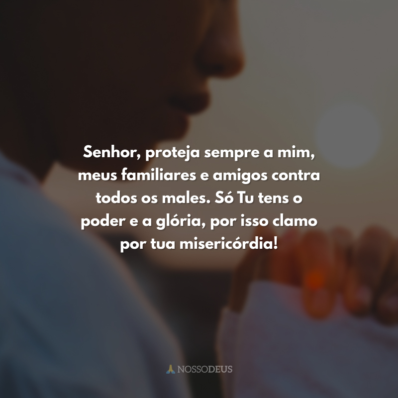 Senhor, proteja sempre a mim, meus familiares e amigos contra todos os males. Só Tu tens o poder e a glória, por isso clamo por tua misericórdia!
