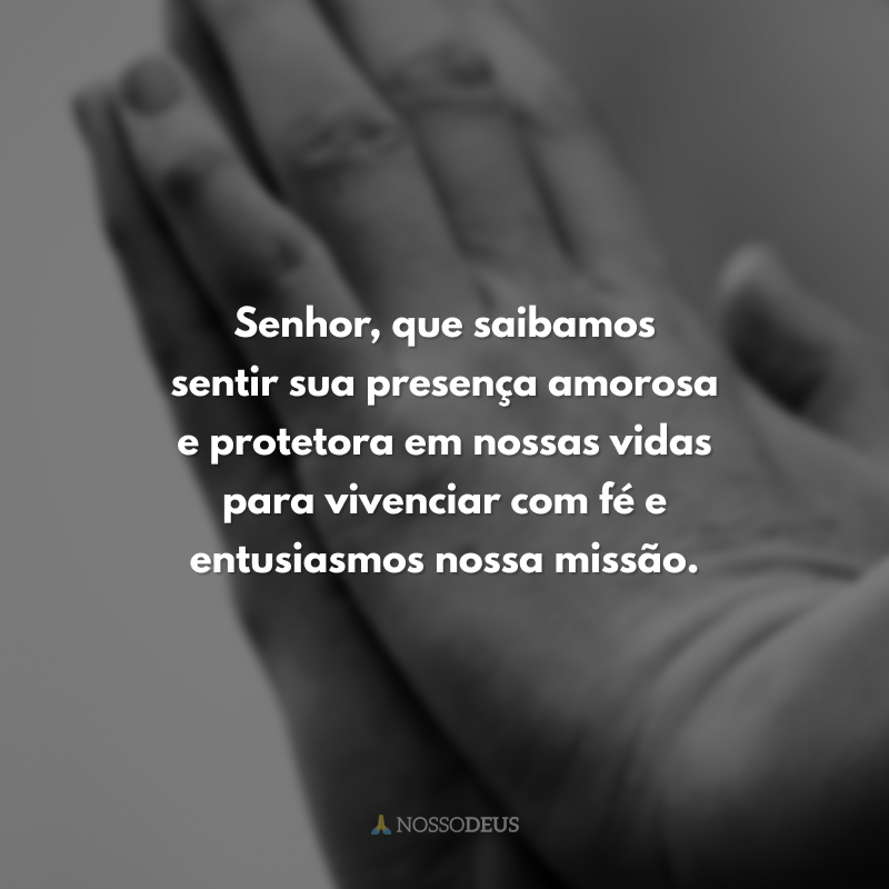 Senhor, que saibamos sentir sua presença amorosa e protetora em nossas vidas para vivenciar com fé e entusiasmos nossa missão.