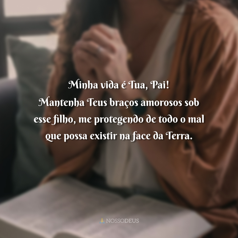 Minha vida é Tua, Pai! Mantenha Teus braços amorosos sob esse filho, me protegendo de todo o mal que possa existir na face da Terra.