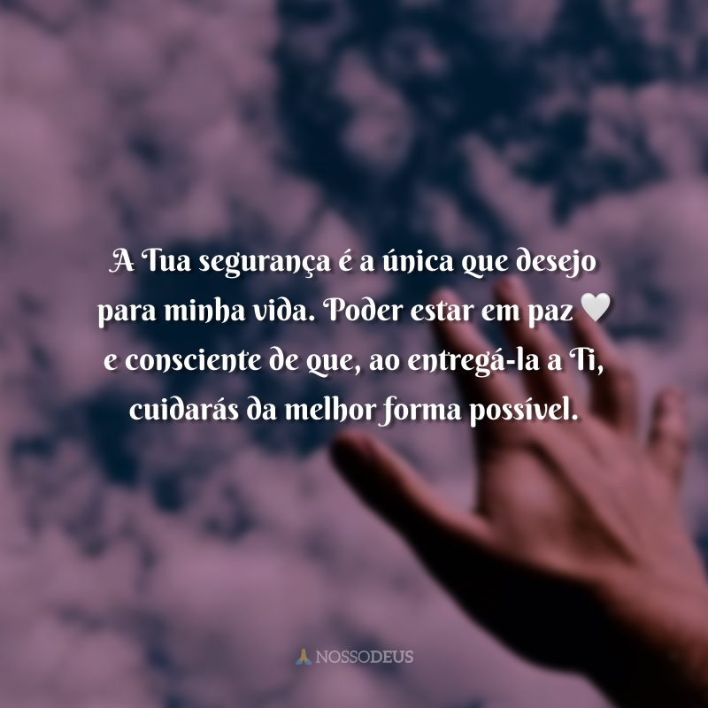 A Tua segurança é a única que desejo para minha vida. Poder estar em paz 🤍 e consciente de que, ao entregá-la a Ti, cuidarás da melhor forma possível.