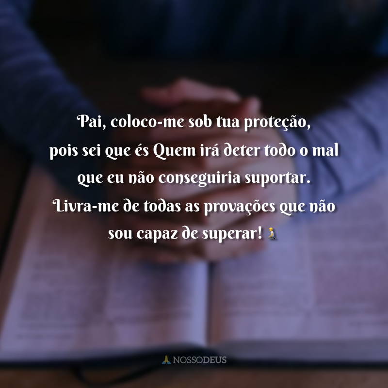 Pai, coloco-me sob tua proteção, pois sei que és Quem irá deter todo o mal que eu não conseguiria suportar. Livra-me de todas as provações que não sou capaz de superar!🧎