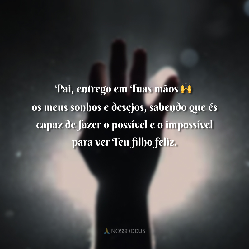 Pai, entrego em Tuas mãos 🙌 os meus sonhos e desejos, sabendo que és capaz de fazer o possível e o impossível para ver Teu filho feliz.
