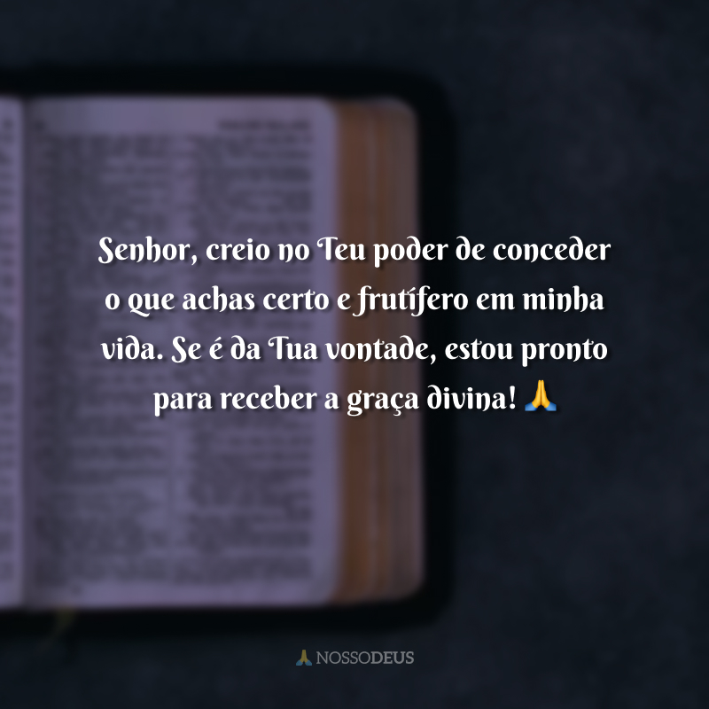 Senhor, creio no Teu poder de conceder o que achas certo e frutífero em minha vida. Se é da Tua vontade, estou pronto para receber a graça divina! 🙏