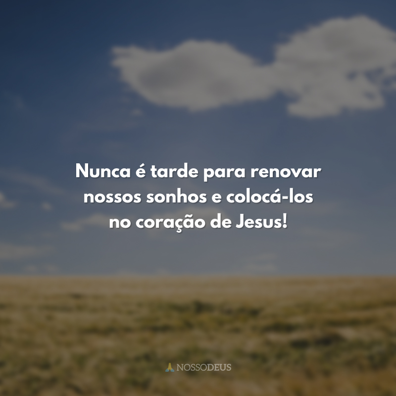 Nunca é tarde para renovar nossos sonhos e colocá-los no coração de Jesus!