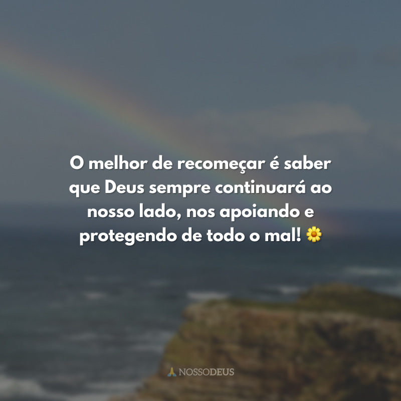 O melhor de recomeçar é saber que Deus sempre continuará ao nosso lado, nos apoiando e protegendo de todo o mal! 🌼