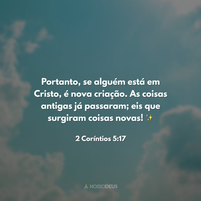 Portanto, se alguém está em Cristo, é nova criação. As coisas antigas já passaram; eis que surgiram coisas novas! ✨