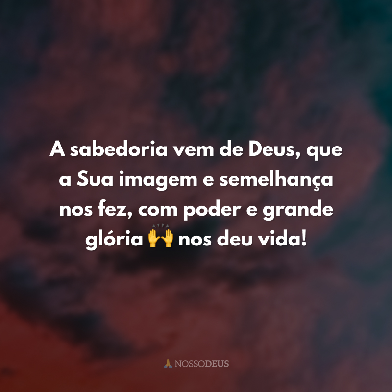 A sabedoria vem de Deus, que a Sua imagem e semelhança nos fez, com poder e grande glória 🙌 nos deu vida!