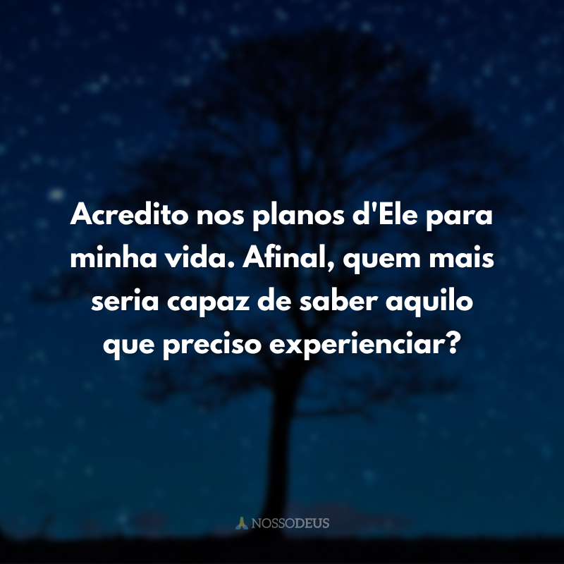 Acredito nos planos d'Ele para minha vida. Afinal, quem mais seria capaz de saber aquilo que preciso experienciar?