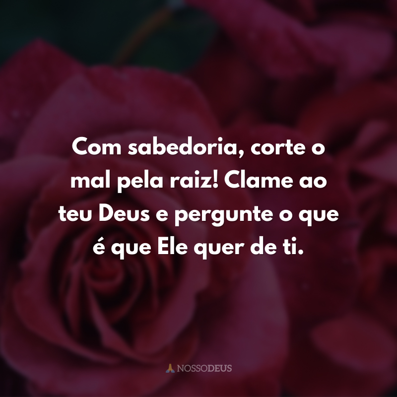 Com sabedoria, corte o mal pela raiz! Clame ao teu Deus e pergunte o que é que Ele quer de ti.