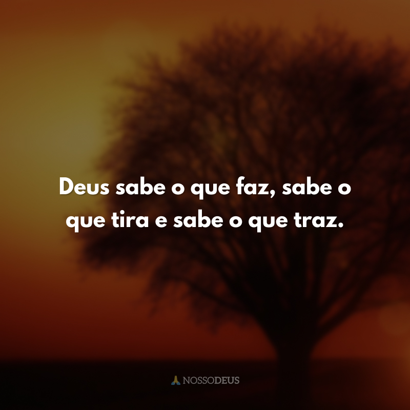 Deus sabe o que faz, sabe o que tira e sabe o que traz.