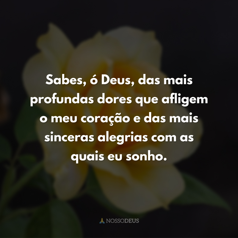 Sabes, ó Deus, das mais profundas dores que afligem o meu coração e das mais sinceras alegrias com as quais eu sonho.