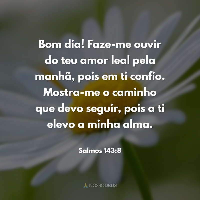 Bom dia! Faze-me ouvir do teu amor leal pela manhã, pois em ti confio. Mostra-me o caminho que devo seguir, pois a ti elevo a minha alma.