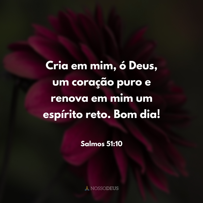 Cria em mim, ó Deus, um coração puro e renova em mim um espírito reto. Bom dia!