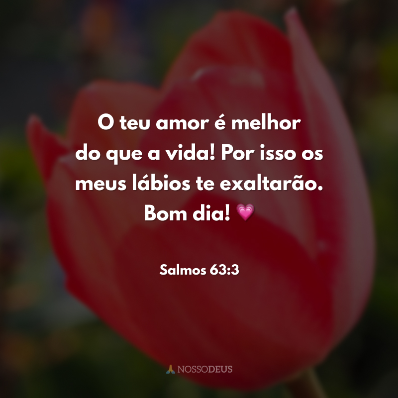 O teu amor é melhor do que a vida! Por isso os meus lábios te exaltarão. Bom dia! 💗